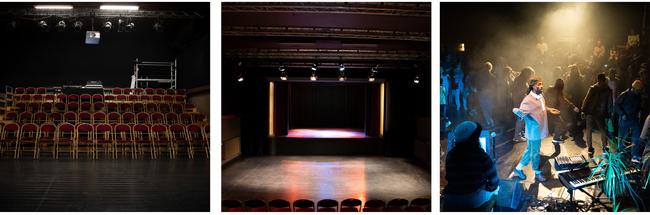Capaciteit: afhankelijk van de opstelling tussen de 60 en 120 personen. Op de tribune staan losse stoelen, er is een vlakke vloer en een podium. Je kan de technische fiche van de zaal hier downloaden.